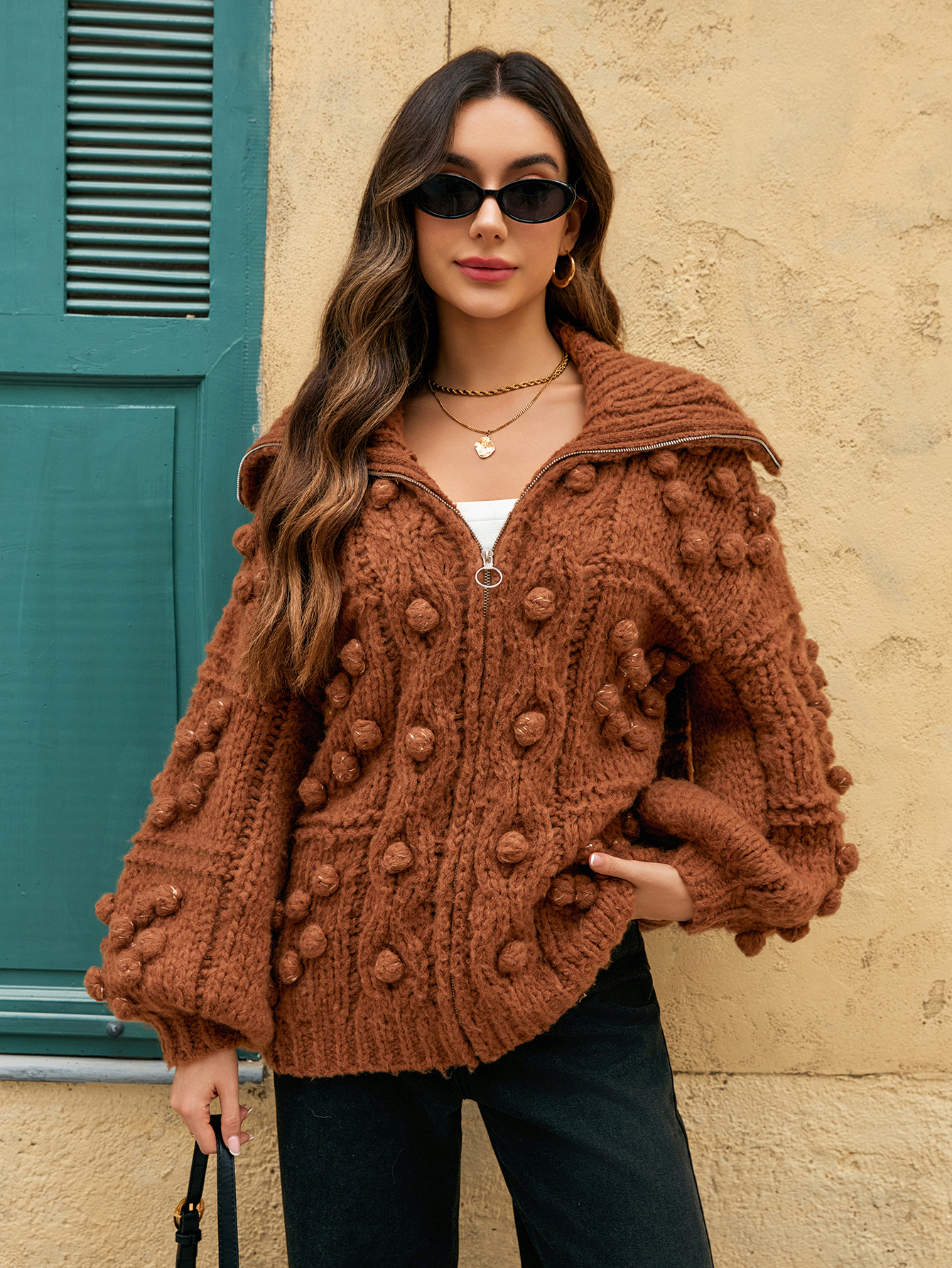 Este cardigan feminino marrom de malha é feito de um tecido de malha macio e confortável com um toque delicado, tornando-o perfeito para usar nas estações de outono e inverno. O design de frente aberta facilita o vestir e despir, ao mesmo tempo que adiciona um toque de estilo casual. Na temporada fria, os cardigans e suéteres femininos tornam-se itens indispensáveis para toda mulher fashion.